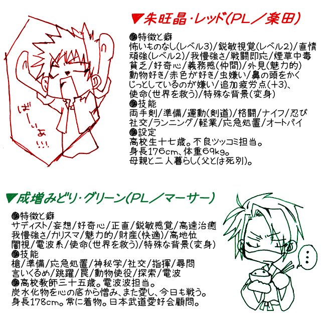 PCの性格や癖、特徴など「人格」を決定し作成を行う。サプリメントを組み合わせることでジャンルを超えて使用できる。