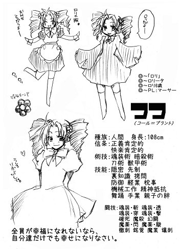 例えば、「能力値5」で「舞踊レベル2」なら7個のサイコロを振り、「4」の目が4つ以上出れば上手く踊れたことになる。